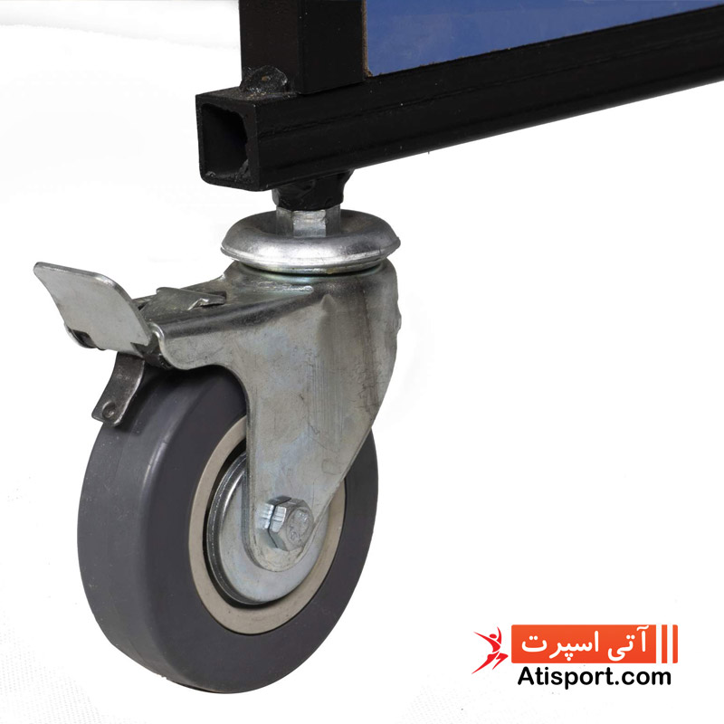 میز پینگ پنگ چرخدار کلاس Aملامین ضد خش دارای پایه قابل تنظیم می باشد تا به راحتی بتوانیم میز در حالت بازی تراز و تنطیم کنیم.