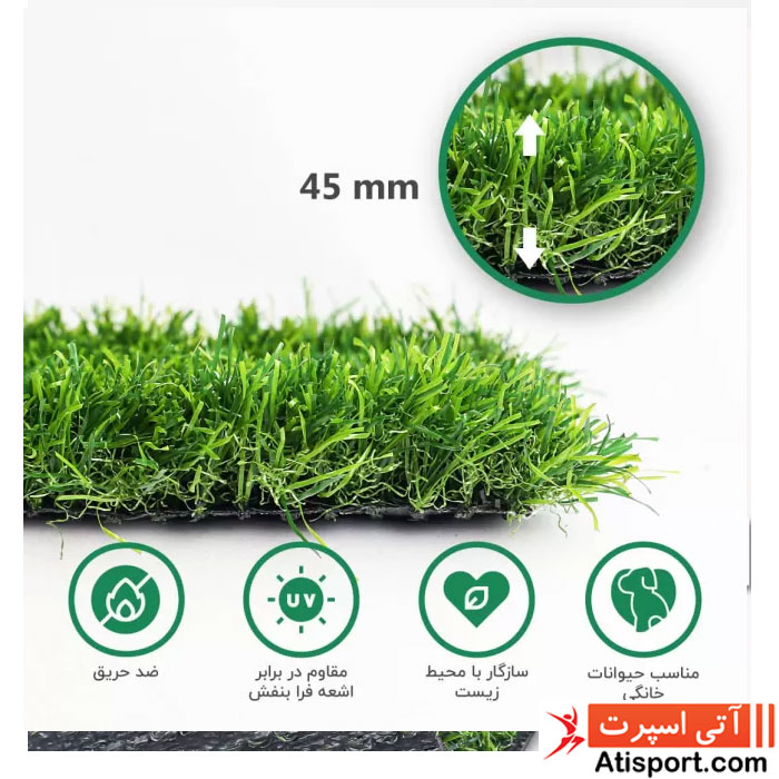 - حداقل ثبت سفارش : 20 متر چمن مصنوعی دو بافت بهاره چیست؟ چمن مصنوعی بهاره دو بافت مناسب جهت مصارف تزئینی و استفاده در مهد کودک ها، رستوران ها، کافه ها و روف گاردن می باشد. همچنین این چمن مصنوعی از لطافت خاصی برخوردار است که مناسب استفاده در محوطه های با تردد بدون کفش که چمن با پوست بدن مستقیم در ارتباط است مناسب می باشد. مزایای چمن مصنوعی دو بافت بهاره مقاومت در برابر شرایط جوی عدم نیاز به نگهداری مکرر چمن مصنوعی دو بافت بهاره 45 میلیمتر |