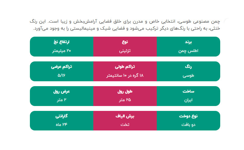 قیمت چمن مصنوعی طوسی 20 میل با مشخصات و 2ساله شرکتی در آتی اسپرت - مشاوره تخصصی خرید