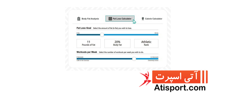 در این بخش از نرم افزار مقدار اضافه وزن شخص محاسبه می گردد و برای روی نوار مورد نظر فهمید که برای رسیدن به وضعیت پایدار باید چقدر وزن کم کند. در قسمت پایین نیز می توان مشخص کرد که با چند روز در هفته فعالیت ورزشی می توان تا تاریخ مورد نظر به وزن ایده آل رسید.