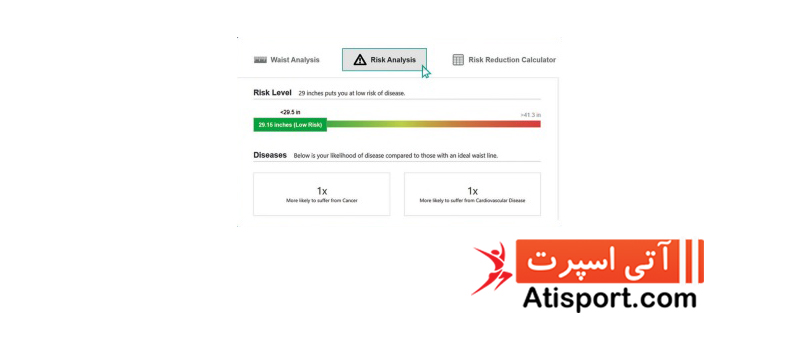 در این بخش نیز نواری وچود دارد که می توان با محاسبه مقدار کاهش اندازه دورشکم، مقدار ضریب ابتلا به بیماریهای مختلف را به حالت عادی رساند.