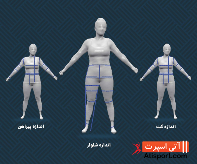 2- اندازه: شامل اندازه ناحیه های مختلف بدن می باشد که تمام اندازه ها برحسب cm است