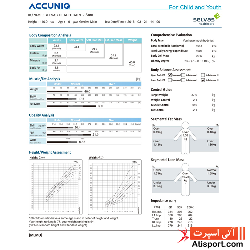 - موارد اساسی مانند تجزیه و تحلیل ترکیب بدن، تجزیه و تحلیل ماهیچه های اسکلتی/چربی، تجزیه و تحلیل چاقی، تجزیه و تحلیل چاقی شکمی، ارزیابی چاقی و ارزیابی جامع را در یک اندازه گیری ارائه می دهد.