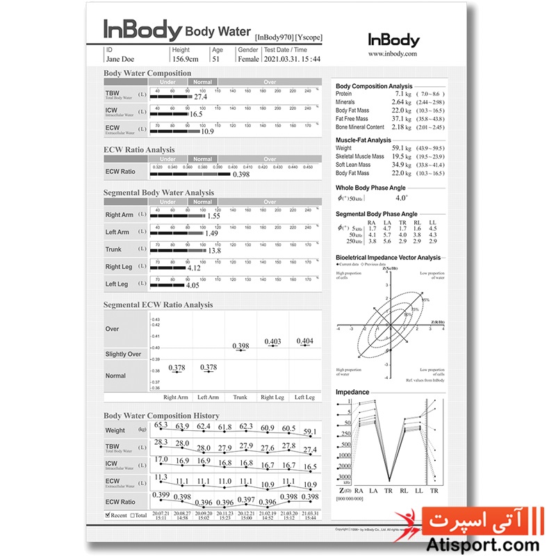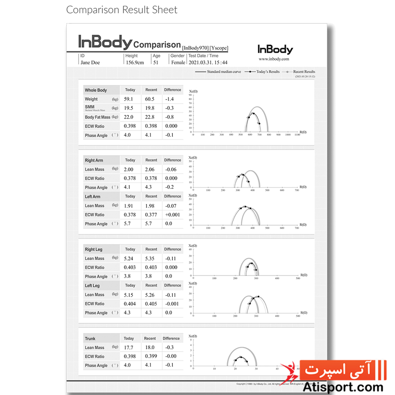 - داراي 5 برگه نتایج مجزا شامل ترکیبات بدن، آب بدن، ارزیابی، تحقیقاتی، مقایسه اي