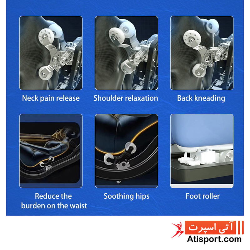 - ماساژ کیسه های هوای کامل برای شانه، تکیه گاه بازو، ران، ساق پا، کف پا