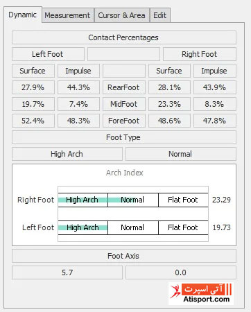 نمونه ای از ریپورت دستگاه در تشخیص نوع قوس کف پا در تصویر زیر نشان داده شده است: