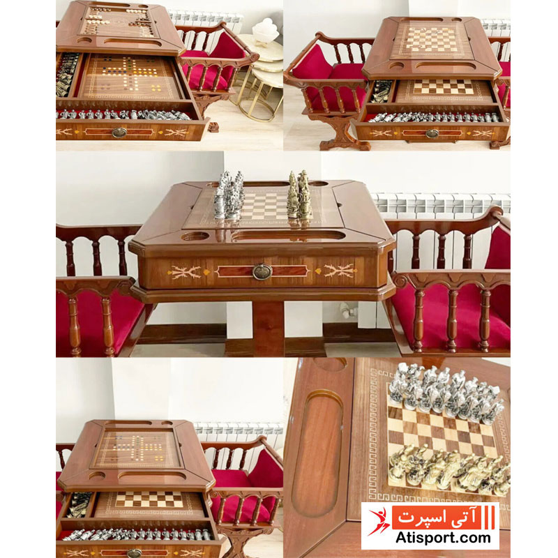 - شامل تخته نرد، شطرنج، منچ، مارپله، دوز،کارت ، شوتبال ، تریگر ، دومینو ، برج هیجان+صفحه ساده که میتوان به عنوان میز ناهار خوری و یا میز کار استفاده نمود . |