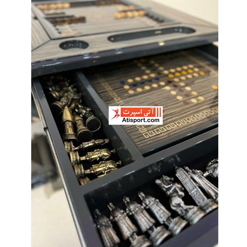 - شامل تخته نرد، شطرنج، منچ، مارپله، دوز،کارت، شوتبال ، تریگر ، دومینو ، برج هیجان+صفحه ساده که میتوان به عنوان میز ناهار خوری و یا میز کار استفاده نمود . |
