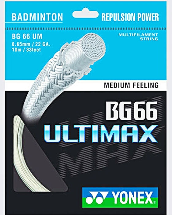 زه بدمینتون یونکس BG66 ultimax - این زه یونکس محصول کشور ژاپن است . این زه با ضخامت 0.65 میلیمتر طوری طراحی شده که سرعت و کنترل بالایی دارد . حس رویه زه متوسط ( MEDIUM FEELING )است . Durability (دوام ، عمر ): [ 6 ] Repolsion Power ( قدرت دفع ) :[ 10 ] Hitting Sound ( صدای ضربه ) : [ 10] Shock Absorption ( جذب ضربه ) : [ 8 ] Control ( کنترل ) : [ 10 ]