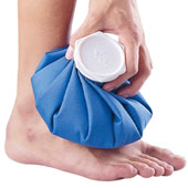 - کیسه را پر از آب و یخ نمایید و آن را دقیقا بر روی ناحیه آسیب دیده قرار دهید.