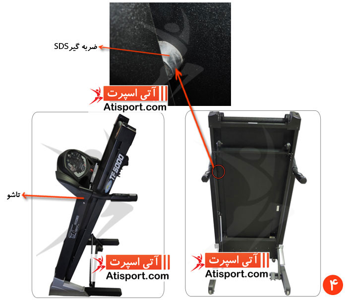 در تصویر شماره 4 می توانید قابلیت تاشو و ضربه گیر تردمیل تایتان فیتنس TF5000 را مشاهده نمایید .