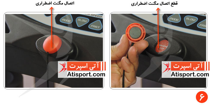 در تصویر شماره 6 می توانید اتصال و قطع اتصال مگنت اضطراری تردمیل تایتان فیتنس TF5000 را مشاهده نمایید .