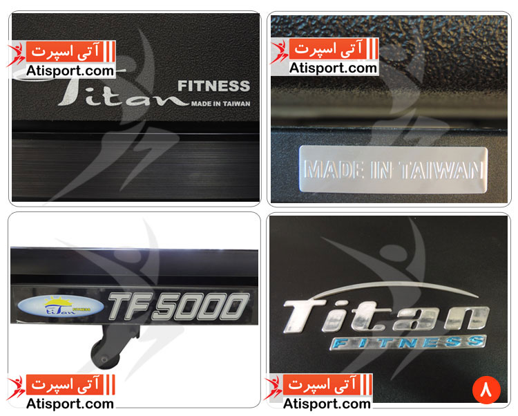 در تصویر شماره 8 اصالت و شناسنامه دستگاه در قسمت های مختلف تردمیل تایتان فیتنس TF5000 قابل مشاهده می باشد .