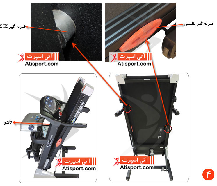 4- در تصویر شماره 4 می توانید قابلیت تاشو و ضربه گیر تردمیل تایتان فیتنس TF6700V را مشاهده نمایید .