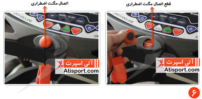 6 - در تصویر شماره 6 می توانید اتصال و قطع اتصال مگنت اضطراری تردمیل تایتان فیتنس TF6700V را مشاهده نمایید .