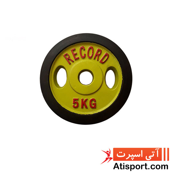 قیمت وزنه صفحه دمبل دور لاستیک رکورد 5 کیلوگرم یک عدد با مشخصات و 1 سال گارانتی و 3 سال خدمات پس از فروش تولیدی رکورد در آتی اسپرت - مشاوره تخصصی خرید