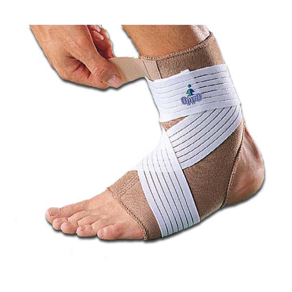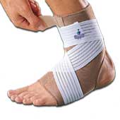 6- یک طرف بند را گرفته و به صورت مورب روی پا و دور مچ پا بپیچانید بند را محکم روی مچ پا ببندید تا فشار مطلوب حاصل شود.