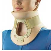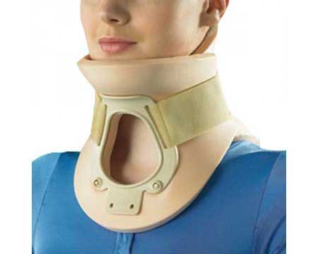 1- دور گردن بیمار را اندازه گیری کنید، اگر سایز گردن بیمار بین دو سایز متوالی قرار گرفت، سایز بزرگتر را در نظر بگیرید. بعد از انتخاب سایز مناسب، گردنی را دور گردن بیمار قرار دهید به نحوی که چانه بیمار در جای مشخص شده برای چانه قرار گیرد. قبل از محکم کردن تسمه آن اطمینان حاصل کنید که گردن و سر بیمار در حالت خنثی قرار دارد.