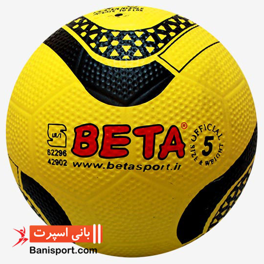 توپ های فوتبال رویه لاستیکی بتا بر اساس استاندارد های ملی جمهوری اسلامی ایران طراحی و در سایز 2 ، 3 ، 3.5 ، 4 و 5 تولید می گردد و از سه قسمت اصلی بلیدر ، نخ پیچ و رویه توپ تشکیل شده است.