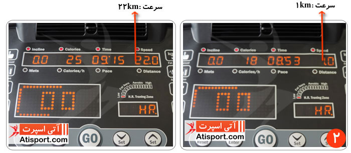 2- در تصویر شماره 2 می توانید نمایی از مانیتور که سرعت 1 و 22 کیلومتر را نشان می دهد ، مشاهده نمایید .