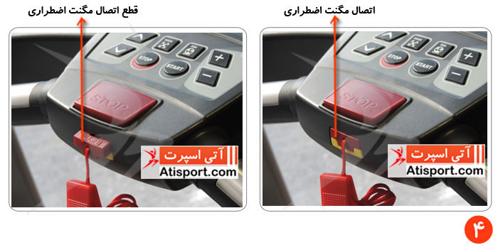 4 - در تصویر شماره 4 می توانید اتصال و قطع اتصال مگنت اضطراری تردمیل تایتان فیتنس TF1020 AC را مشاهده نمایید .