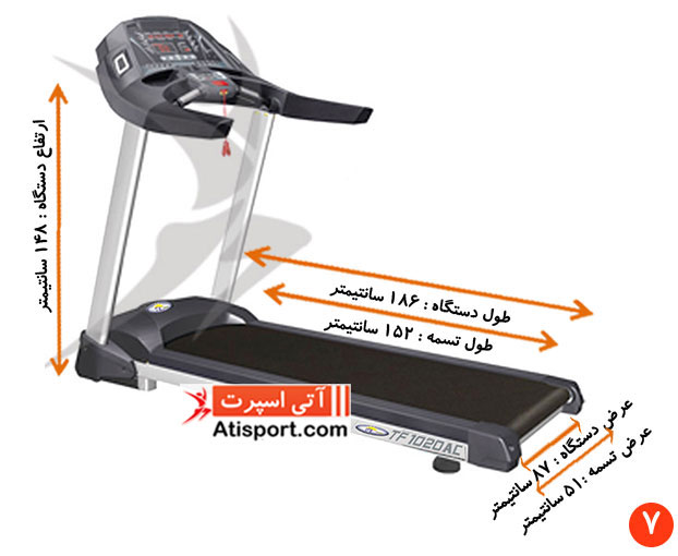 7- در تصویر شماره 7 ابعاد تردمیل تایتان فیتنس TF1020 AC بطور دقیق قابل مشاهده می باشد.