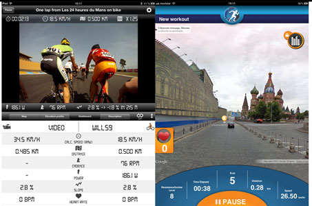یکی ازاین برنامه ها بیش از 40 هزار ساعت فیلم هایی است که توسط ورزشکاران حرفه ای در نقاط مختلف جهان با حمل دوربین روی سر خود فیلم برداری شده است و شما با تماشای این فیلم ها و همچنین اعمال عوارض طبیعی داخل فیلم مثل سرعت ورزشکار و شیب محیط که به صورت اتوماتیک انجام می شود می توانید از ورزش لذت ببرید. تصور کنید یک ورزشکار با حمل دوربین روی سر خود تصاویر حرکت در جنگل های آمازون را فیلم برداری کرده است و از محیط های خطرناک و پر رمز و راز انبوه درخت و گیاهان عبور می کند.شما در منزل بر روی تردمیل در محیط امن دارید با تجربه او شریک می شوید و همزمان تردمیل در هنگام سریع حرکت کردن ورزشکار در فیلم و یا رسیدن به شیب این عوارض را بر روی تردمیل شما به صورت اتوماتیک اعمال می کند. همچنین امکان بر روی اسکی ثابت و دوچرخه ثابت های کمپانیBH اسپانیا هم که Dual kit دارند وجود دارد و مثلا شما هنگام ورزش با دوچرخه ثابت BH میتوانید فیلم دوچرخه سواری حرفه ای در پیست دوچرخه سواری را در جاده های پر پیچ و خم کوهستانی را تجربه کنید و همزمان با حرکت دوچرخه سوار در فیلم و سعود او به نقاط مختلف جاده شما هم با اعمال ،سختی حرکت به صورت اتوماتیک بر روی دوچرخه شما ایجاد می شود می توانید حس حرکت در محیط واقعی را تا حد زیادی تجربه کنید و از ورزش لذت ببرید و در هر جلسه تمرینی می توانید فیلم جدیدی را تجربه کنید که باعث تنوع بیشتری می شود.