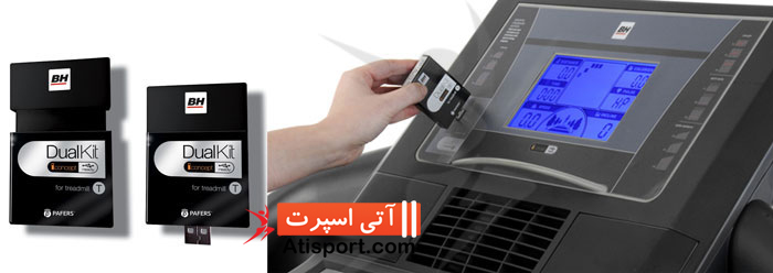 این وسیله با نام تجاری Dual kit بر روی دستگاههای ورزشی مختلف کمپانی BH مثل تردمیل، اسکی ثابت و یا دوچرخه ثابت نصب شده است و قابلیت ها ی متنوع و جالب را ایجاد کرده است که در ادامه به بررسی آن ها میپردازیم. Dual kit در اصل یک قطعه الکترونیکی به ابعاد حدود 8,5 cm است که به وسیله پورت usb به مانیتور تردمیل یا هروسیله دیگری که امکان نصب این دستگاه را داشته باشد، وصل می شود. بعد از وصل شدن چراغ قرمز رنگی روی Dual kit روشن می شود که در آن هنگام شما با هر وسیله الکترونیکی که قابلیت اتصال بلوتوثی داشته باشد می توانید با سرچ کردن Dual kit را پیدا کنید و به آن متصل شوید در این هنگام دستگاه الکترونیکی شما که می تواند تبلت گوشی و یا موبایل باشد که با سیستم عامل اندروید یا IOS کار می کند می تواند با اتصال به اینترنت برای دفعه اول برنامه های Dual kit را دریافت کند واز امکانات مختلف این برنامه ها بهره مند شوید.