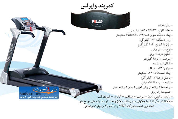تردمیل تاپ شیپ 8888 با کمربند وایرلس :