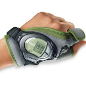 نهايت نوآوري : اندازه گيري نبض بدون استفاده از نوار دور سينه! با تکنولوژي جديد اندازه گيري ضربان قلب،آينده را امروز تجربه کنيد-نمايشگر ضربان قلب بر روي دستکش با طراحي مناسب دست.امواج نوري توسط سنسور به شريان انگشت مي تابد و بازتاب هاي مختلف جريان را اندازه گيري مي کند.دستکش طوري طراحي شده که مانند پوست دوم دست عمل کند وبه خصوص براي دويدن مناسب است.اطلاعات اندازه گيري شده به خاطر زاويه ديد مناسب براحتي قابل رويت هستند و کليد هاي کاربردي در حين دويدن قابل کنترل و استفاده مي باشند.