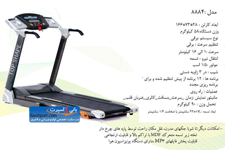 قیمت تردمیل تاپ شیپ 8884 با مشخصات و يكسال گارانتي و 5 سال خدمات پس از فروش شرکت تاپ شیپ در آتی اسپرت - مشاوره تخصصی خرید