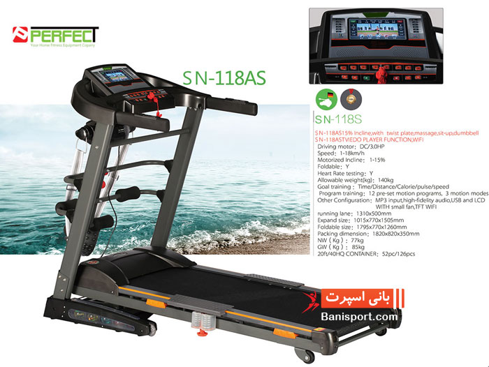 قیمت تردمیل پرفکت SN 118AS با مشخصات و 5 سال گارانتی تعویض تسمه - به همراه یک روغن 120ml ایتالیایی در آتی اسپرت - مشاوره تخصصی خرید
