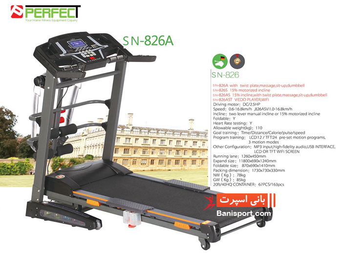 قیمت تردمیل پرفکت SN 826A با مشخصات و 5 سال گارانتی تعویض تسمه - به همراه یک روغن 120ml ایتالیایی در آتی اسپرت - مشاوره تخصصی خرید