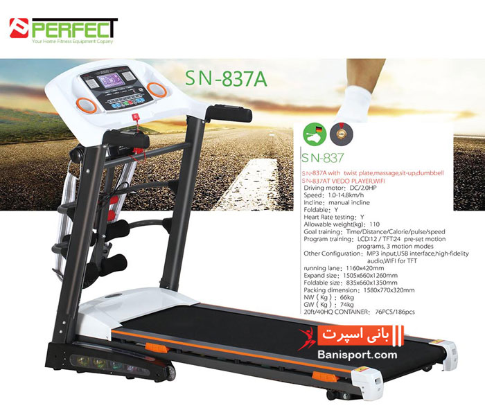 قیمت تردمیل پرفکت SN 837A با مشخصات و 5 سال گارانتی تعویض تسمه - به همراه یک روغن 120ml ایتالیایی در آتی اسپرت - مشاوره تخصصی خرید