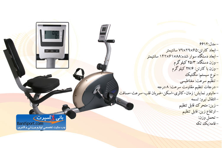 دوچرخه ثابت 6612 : - مانیتور نمایش: زمان – کالری – اسکن – ضربان قلب – سرعت – مسافت |