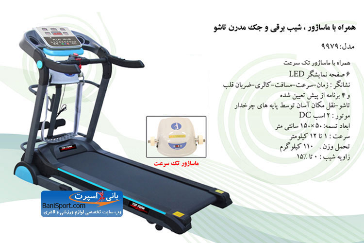 قیمت تردمیل تاپ فرم 9979 با ماساژور تک سرعت با مشخصات و يكسال گارانتي و 5 سال خدمات پس از فروش شرکت تاپ فرم در آتی اسپرت - مشاوره تخصصی خرید