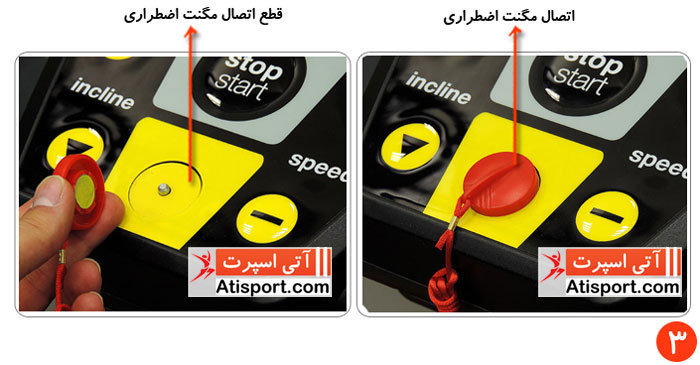 3 - در تصویر شماره 3 می توانید اتصال و قطع اتصال مگنت اضطراری تردمیل BH Fitness I RC09 Dual را مشاهده نمایید .