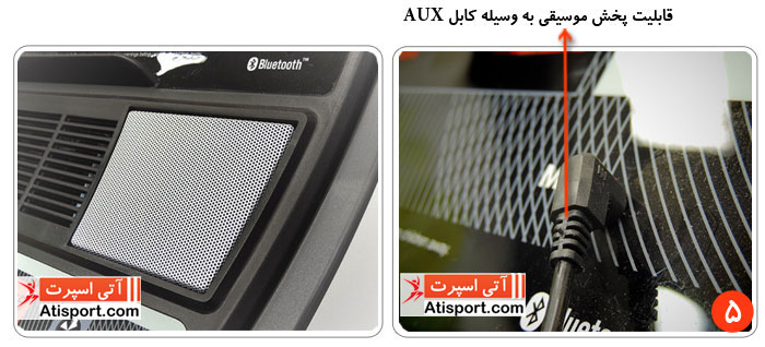 5 - در تصویر شماره 5 شما می توانید قابلیت پخش موسیقی به وسیله کابل AUX و اسپیکرهای قدرتمند تردمیل BH Fitness I RC09 Dual را مشاهده نمایید.