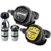 پک کامل رگلاتور غواصی Cressi AC2 : پک کامل شامل : رگلاتور اصلی - رگلاتور اختاپوس رگلاتور وسیله ایست که هوای تنفسی پر فشار درون سیلندر را برای تنفس غواص آماده کرده و وی را قادر میسازد تا در زیر آب تنفس کند این بخش از تجهیزات اجازه میدهد که هوا با فشار مناسب و به صورت یکسان به غواص رسانده شود. رگلاتورها دارای دو مرحله کاهش فشار میباشند که در مرحله نخست هوای پرفشار درون تانک به فشار متوسط کاهس یافته و در مرحله دوم آن فشار متوسط به فشاری معادل با فشار محیط کاهش میابد تا غواص بتواند به سادگی از آن تنفس نماید. مرحله دوم رگلاتورها که در دهان قرار میگیرد دارای دکمهای فشاری در جلو میباشند که جهت بیرون راندن آب از درون آن استفاده میشود. منبع جايگزين هوا ( اختاپوس ) اين وسيله همانند رگلاتور معمولی میباشد و داراي رنگ زرد و شلنگ بلندتر مي باشد . از اين وسيله براي هوا دادن به يك غواص ديگر در مواقع اضطراري و يا خراب شدن ديمن والو اصلي استفاده مي باشد . رنگ زرد آن به جهت نمايان بودن آن در زير آب است |