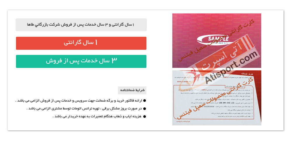 یکسال گارانتی و 3 سال خدمات پس از فروش شرکت بازرگاني طاها