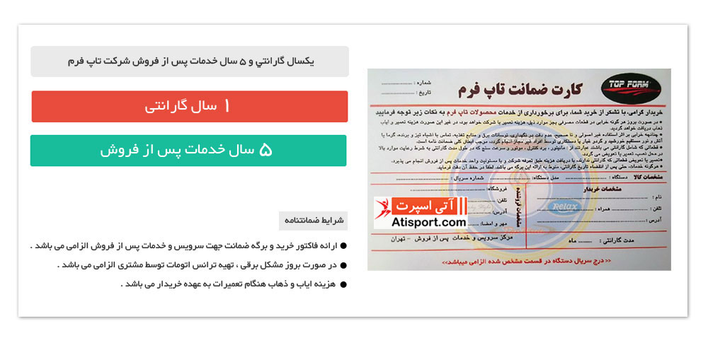 يكسال گارانتي و 5 سال خدمات پس از فروش شرکت تاپ فرم