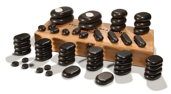 - 54 قطعه سنگ مناسب برای ماساژ گرم کل بدن شامل سنگ های خیلی بزرگ و  26 عدد سنگ متوسط شگفت آور تخت که باعث می شود درمانگر روی نقاط درمانی بیشتری وقت بگذارد.