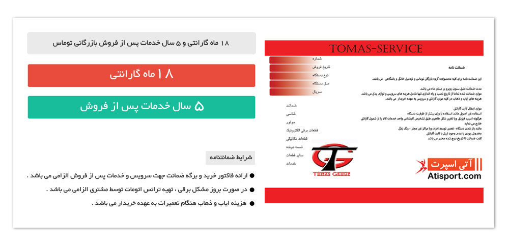 18 ماه گارانتی و 5 سال خدمات پس از فروش