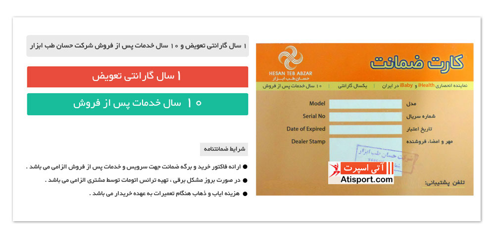 1 سال گارانتی تعویض و 10 سال خدمات پس از فروش شرکت حسان طب ابزار